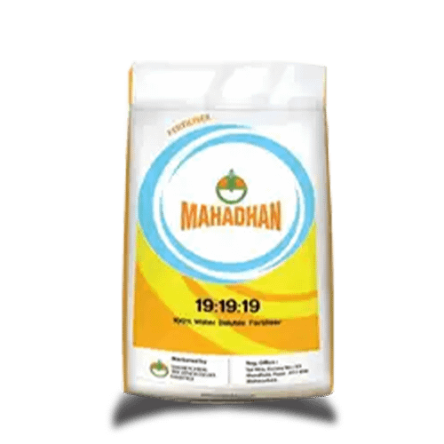 Mahadhan 19:19:19 Fertilizer provides a perfectly balanced mix of essential nutrients (NPK) to support healthy plant growth. Ideal during the vegetative stage, it promotes strong roots, lush foliage, and overall crop vigor. This water-soluble formula ensures quick absorption, making it suitable for all crops through foliar spray or drip irrigation.